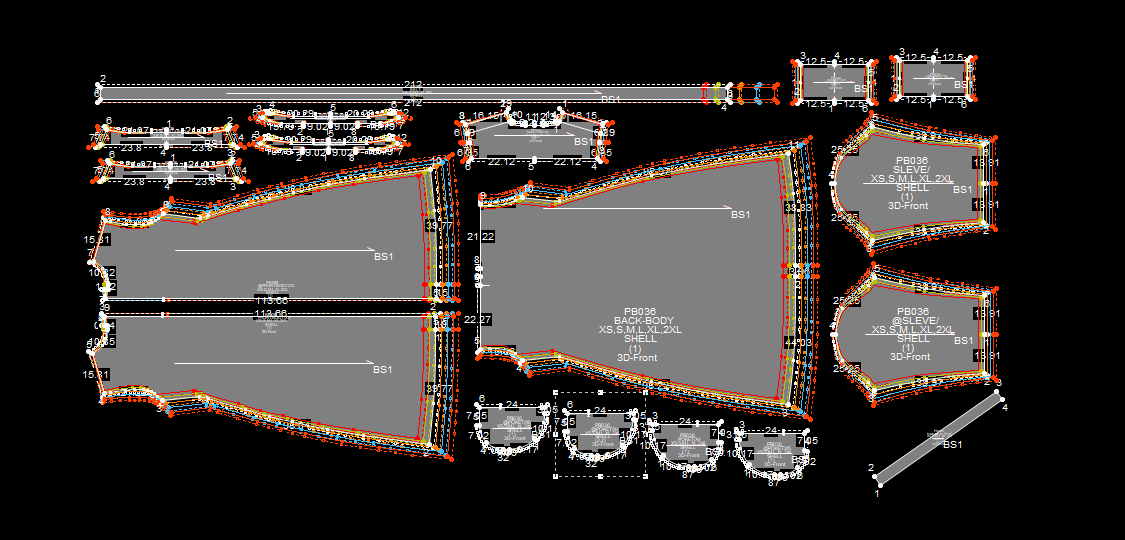 1. Markeran bahan dihasilkan secara otomatis menggunakan algoritma otomatis mengikuti standar industri Internasional untuk mendapatkan penggunaan kain yang paling efisien dengan analisa lebih dari 10,000 markeran pola