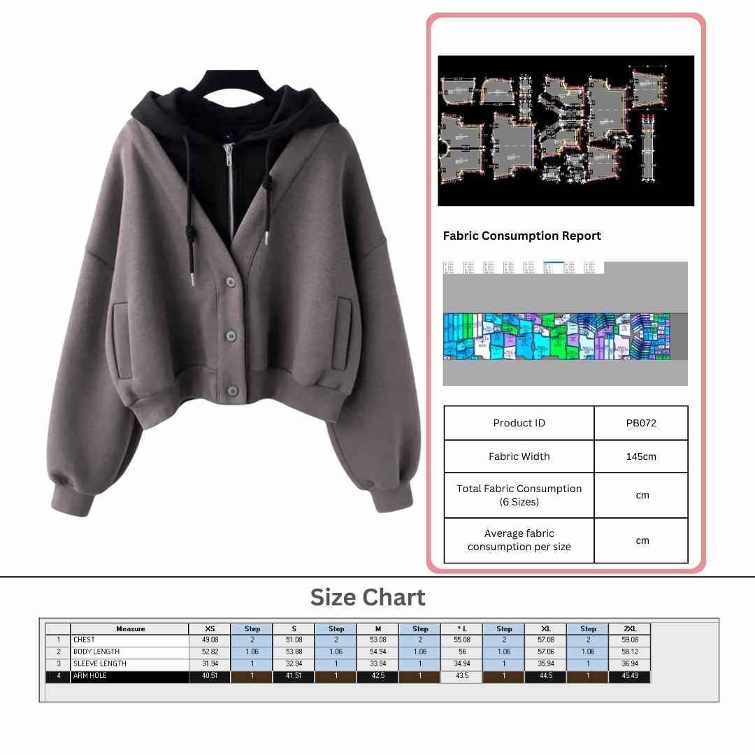 Size Chart Table : Each digital pattern from Polabook includes a detailed size chart to ensure accuracy and precision. Our size chart provides measurements for every available size, making it easy for you to choose the perfect fit for your designs. Whether you’re working on ready-to-wear or custom garments, our professionally crafted patterns come with clear size guidelines to streamline your production process.