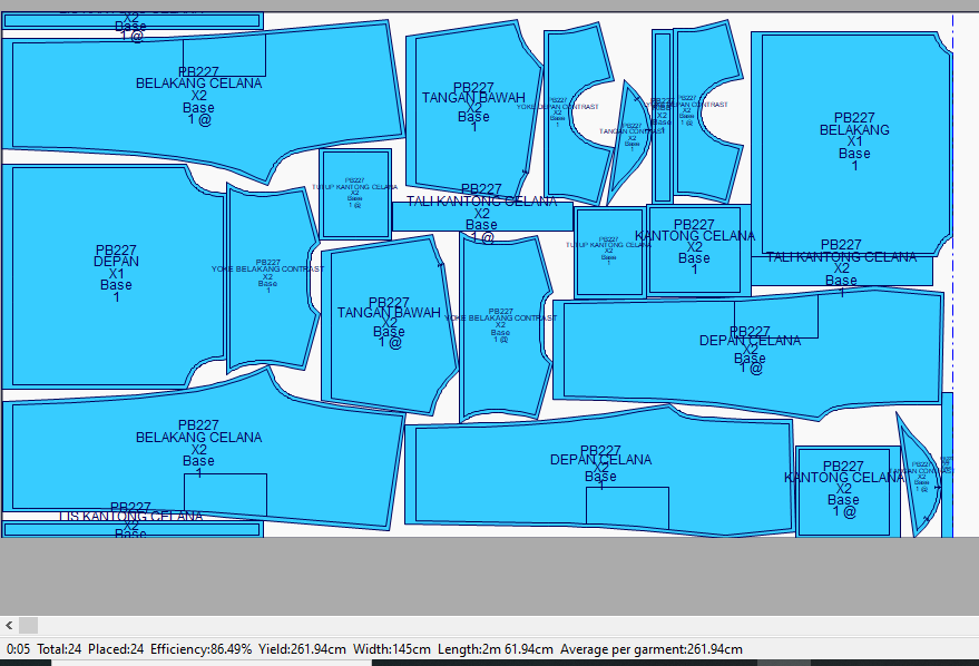 2. Jika ukuran pola hanya ada 1, maka sistem secara otomatis akan membuat beberapa gambar pola dengan ukuran yang sama untuk mendapatkan rata-rata konsumsi kain per ukuran yang paling rendah.