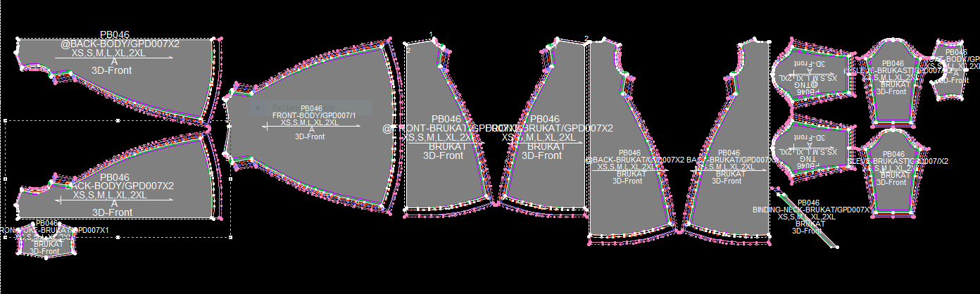 1. Pattern layout is generated automatically using industrial standard nesting algorithm to get the most efficient use of fabric from over 10,000 possible pattern layout.