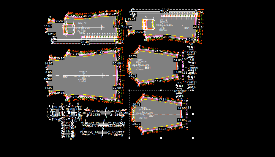 Upload your design and receive detailed Digital Pattern Technical drawings that provide detail description for production including specifications measurements and fabric consumption using our automated marker nesting algorithm saving up to 30% of production cost.