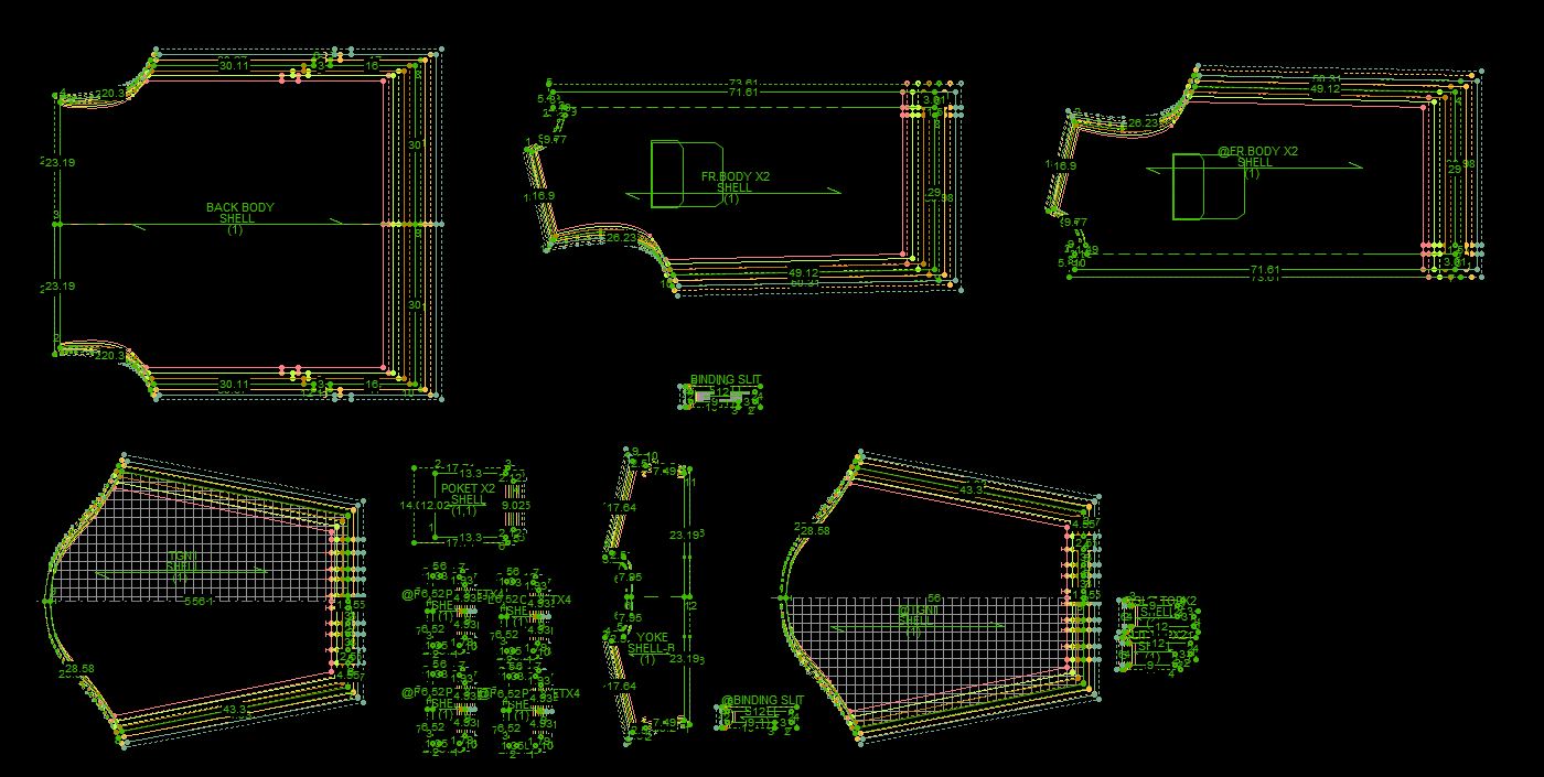 1. Pattern layout is generated automatically using industrial standard nesting algorithm to get the most efficient use of fabric from over 10,000 possible pattern layout.
