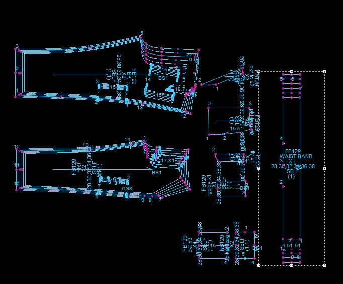 1. Pattern layout is generated automatically using industrial standard nesting algorithm to get the most efficient use of fabric from over 10,000 possible pattern layout.