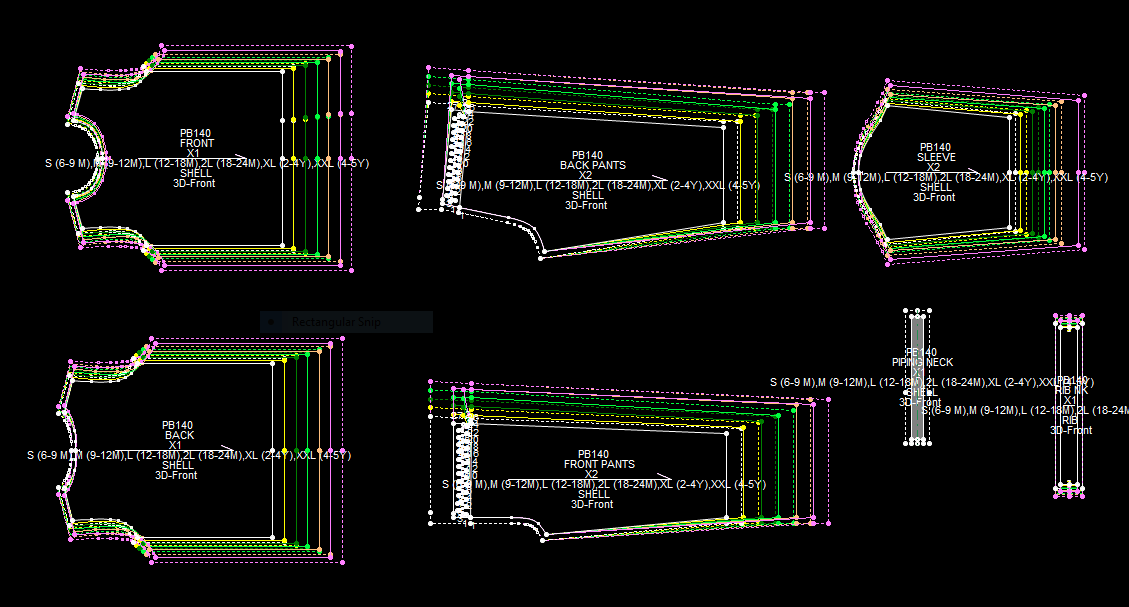 1. Pattern layout is generated automatically using industrial standard nesting algorithm to get the most efficient use of fabric from over 10,000 possible pattern layout.