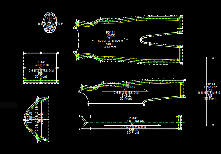 1. Pattern layout is generated automatically using industrial standard nesting algorithm to get the most efficient use of fabric from over 10,000 possible pattern layout.